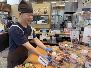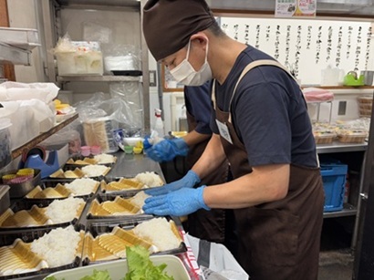 *出来上がったお弁当を店頭に並べる