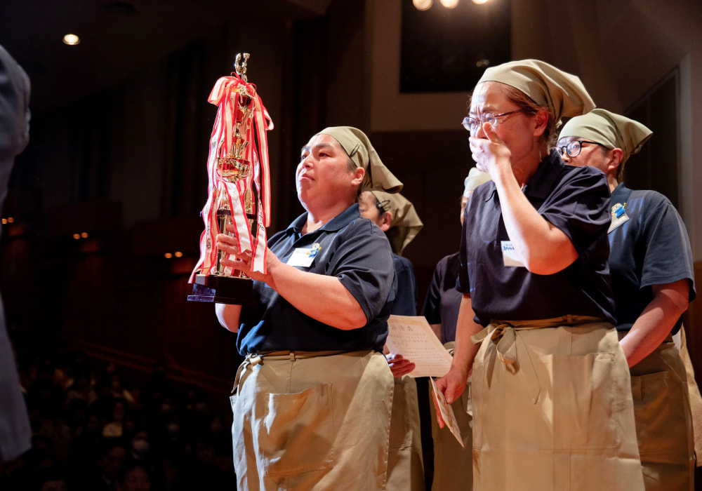 レストランNo.1に輝く店舗はどこだ!?全店から選び抜かれた優秀店舗が成果発表をおこない、会場に集まった社員やアルバイト・パートスタッフへ向けて成功事例を共有する機会です。成長を積み上げていく独自の機会が入船にはあるのです。