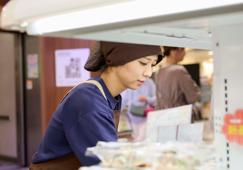 心をこめて店内で調理した手づくりのお惣菜・お弁当を販売します。できたての美味しさと一緒に笑顔を添えてお客様へお届けします。