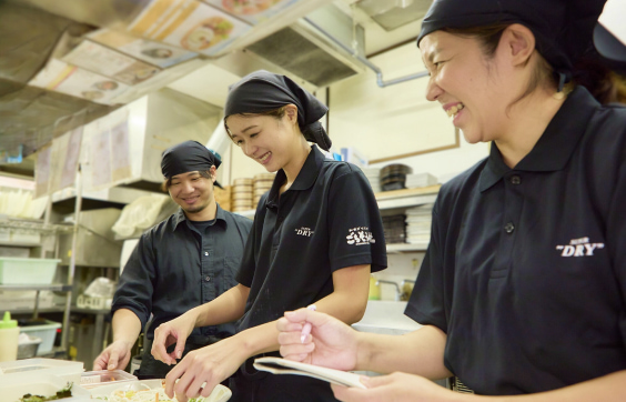 簡単な調理補助や盛付けからスタートします。本格的な調理も学べますが、まずは徐々にレシピを覚えていただければ大丈夫です。みんなで協力しながら「おいしい」を届けるお仕事です。料理が好きな方、大歓迎!